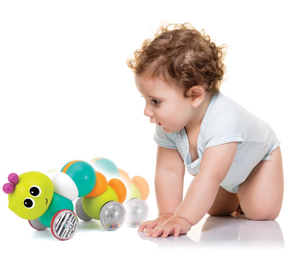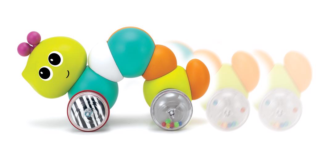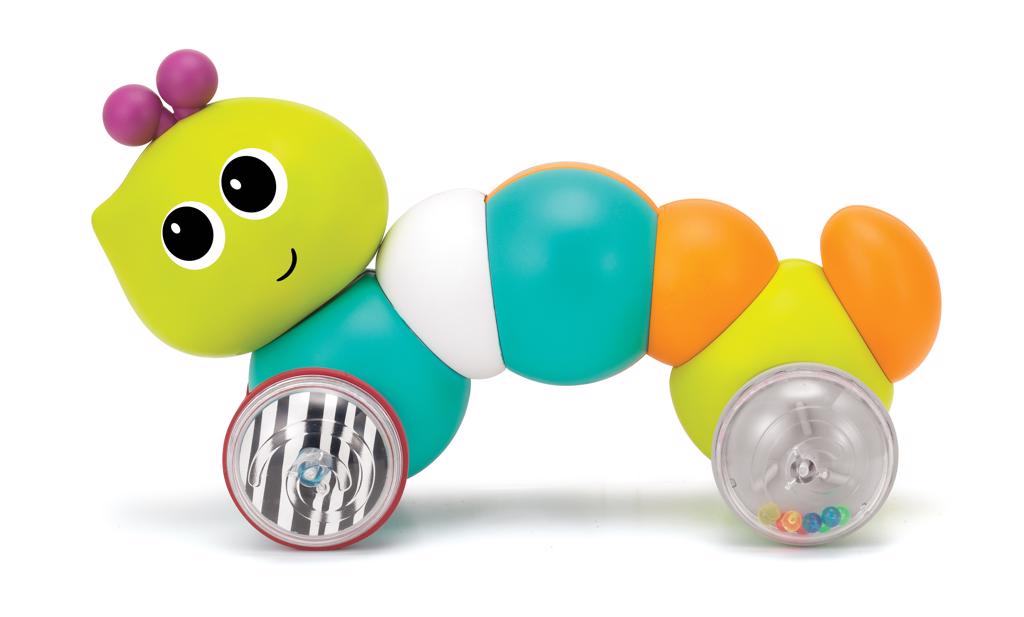 Klasyczna zabawka na kółkach, która zachęca dziecko do poruszania się za nią. Ta sympatyczna gąsieniczka jest idealna do rozwoju wzrokowo-ruchowego twojego malucha. Naciśnij gąsieniczkę aby rozpocząć zabawę! Wiek: 9m+. Wymiary: 20,3 x 8,9 x 17,8 cm.