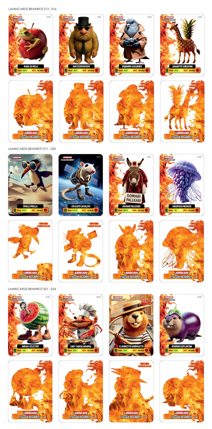 Laminowane karty z postaciami z hitu Tik Toka! Wyprodukowane we Włoszech. W jednej saszetce znajdują się 4 standardowe karty + 1 karta specjalna. Do zebrania 129 kart standardowych oraz 33 specjalne (łącznie 162 do całej kolekcji).