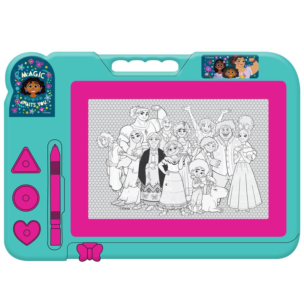 Zawiera tablicę do rysowania, długopis oraz 3 pieczątki. Każdy obrazek można wymazać przesuwając specjalnym przyciskiem w prawo i w lewo i rysować od nowa. Wymiary znikopisu: 38x28x3 cm. Wiek: 3+.