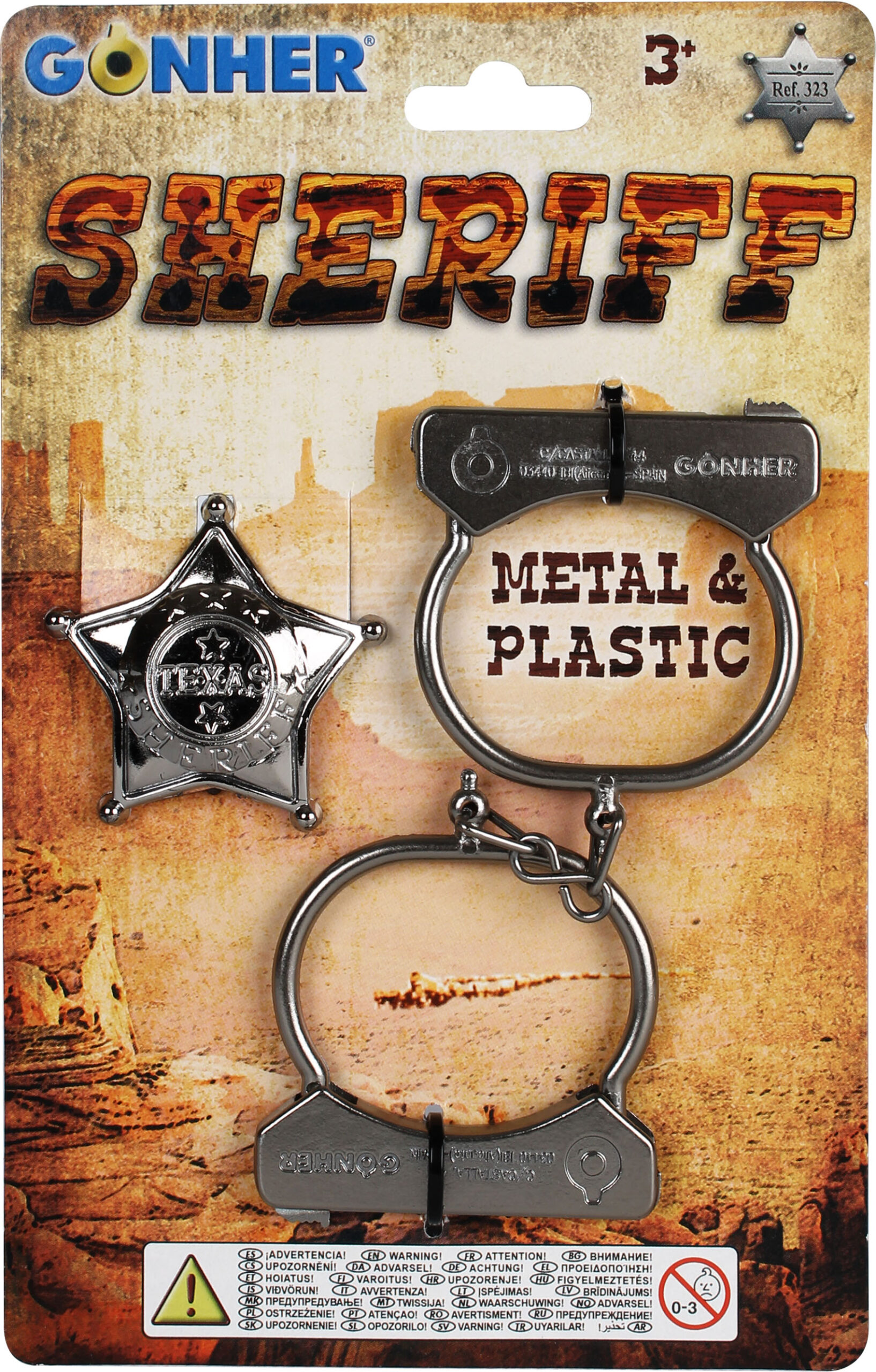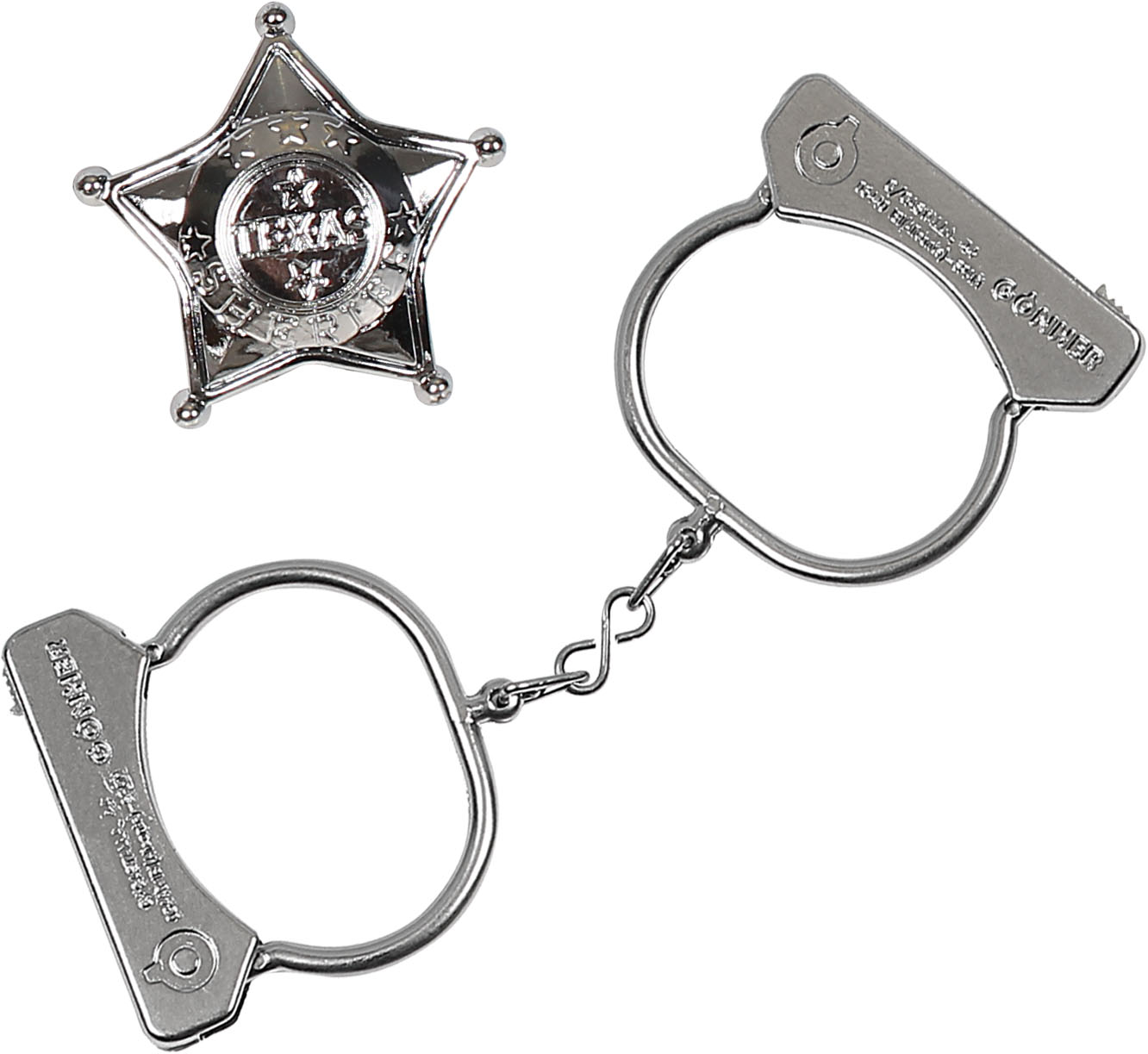 Kajdanki kowbojskie metalowe w zestawie z plastikową odznaką szeryfa. Szt./karton: 20