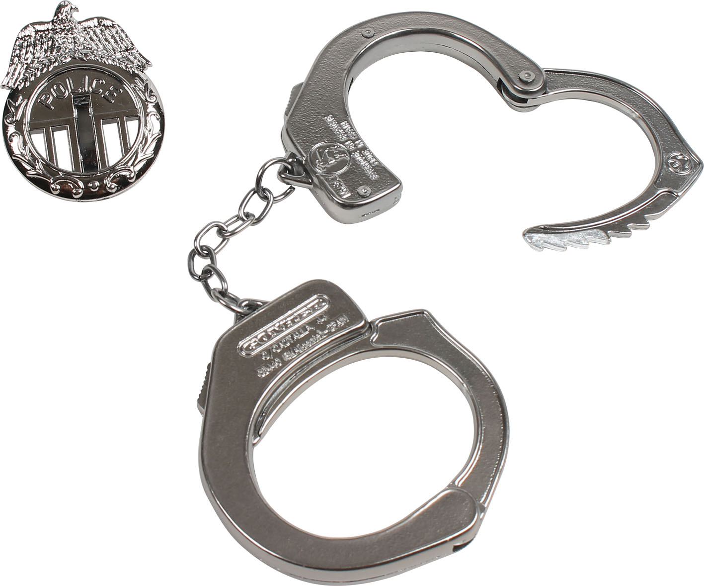 Zestaw zawiera metalowe kajdanki policyjne oraz plastikową odznakę. Wiek: 3+. Szt./karton: 20