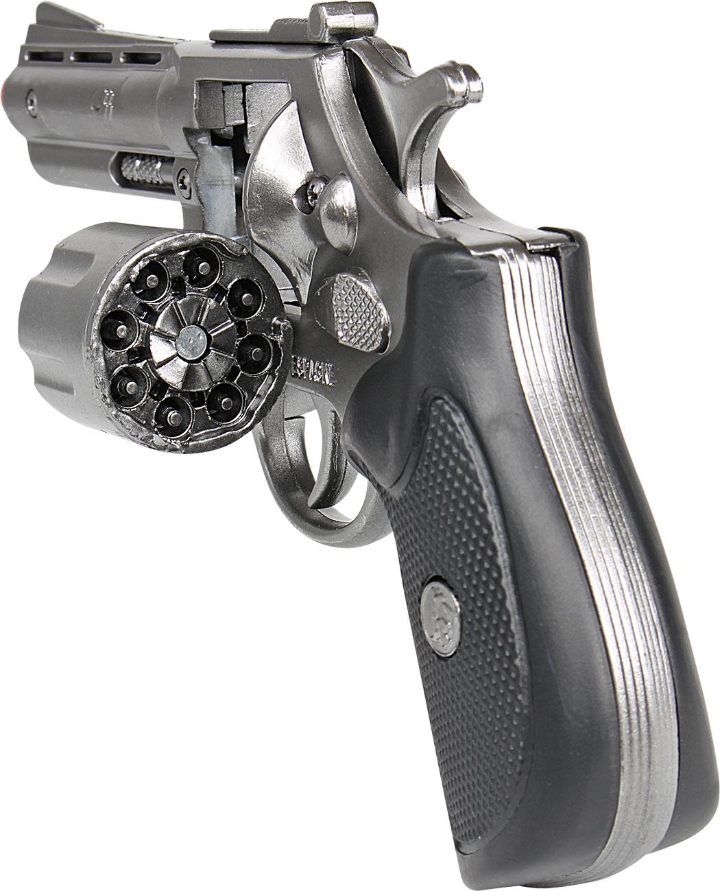 Metalowy rewolwer policyjny na 8 naboi z bębenkiem. Wymiary: 16,5×10,5cm. Wiek: 3+. Szt./karton: 24