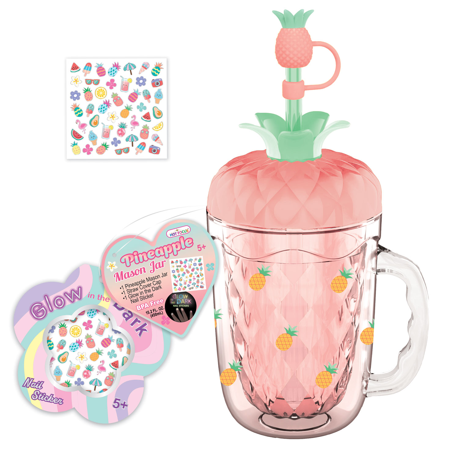 HOT FOCUS KUBEK ZE SŁOMKĄ I NAKLEJKAMI ANANAS
