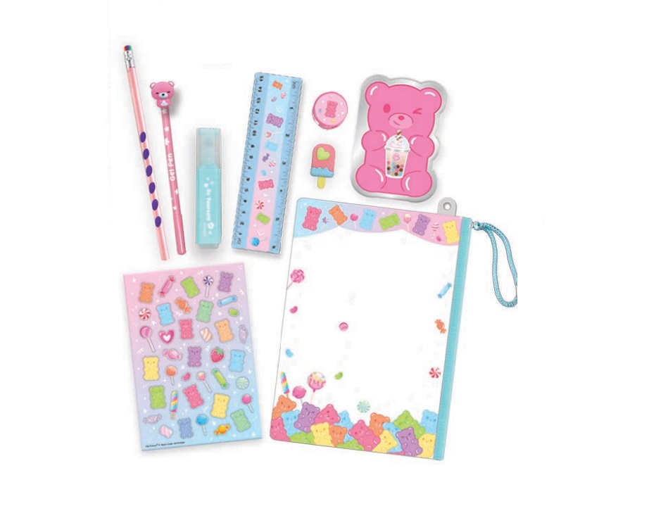 Zestaw zapakowany w ozdobną saszetkę zamykaną na zamek z uchwytem do wygodnego przenoszenia. Wiek: 5+