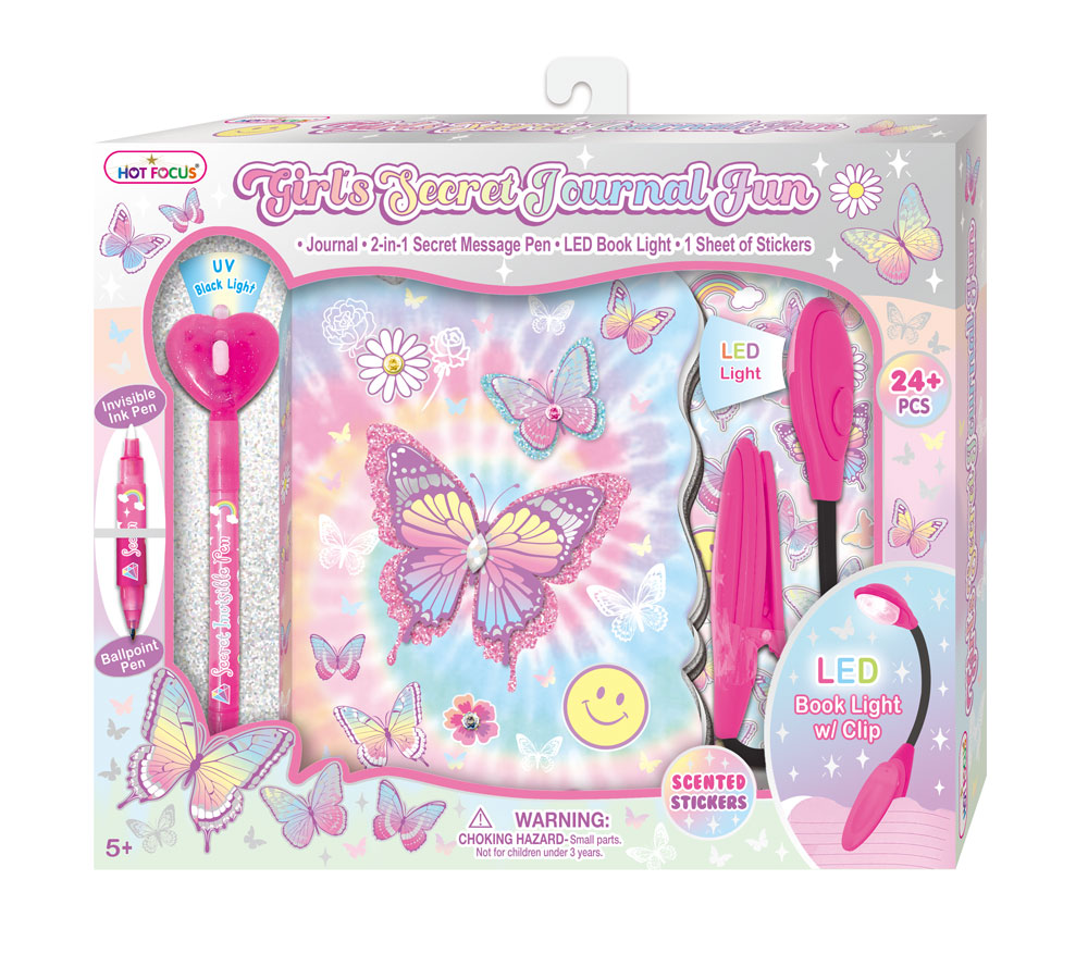 HOT FOCUS PAMIĘTNIK Z LAMPKĄ I DŁUGOPISEM MOTYLKI