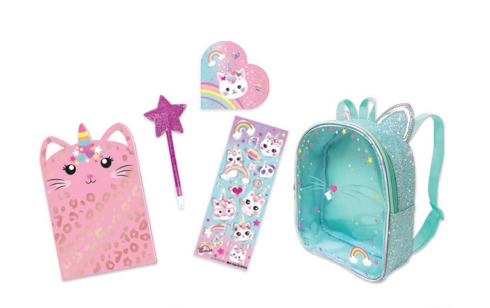 Zestaw zapakowany w plecaczek z brokatem i regulowanymi paskami. Wiek: 5+