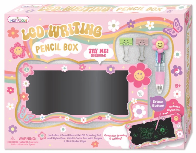 Ekran stworzony do rozpoczęcia przygody z malowaniem lub pisaniem.Wystarczy użyć dołączonego rysika, aby wyczarować kolorowe rysunki czy napisy.Na czarnym tle ekranu powstaną rysunki we wszystkich kolorach tęczy. Aby rozpocząć zabawę na nowo lub poprawić błędy, wystarczy nacisnąć przycisk kosza na dole, a ekran się wyczyści. Po podniesieniu ekranu otworzy się pudełeczko na drobiazgi. W zestawie arkusz kolorowych naklejek, którymi można dodatkowo ozdobić i wyróżnić swój tablet! Wiek: 5+