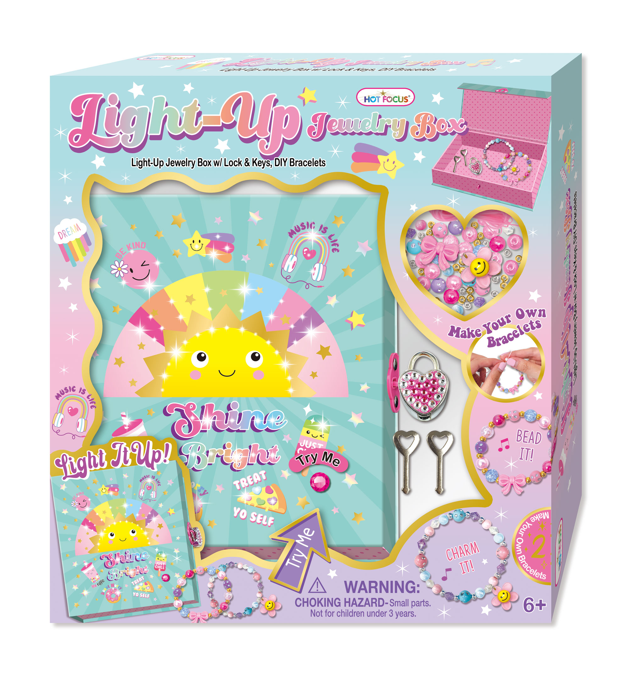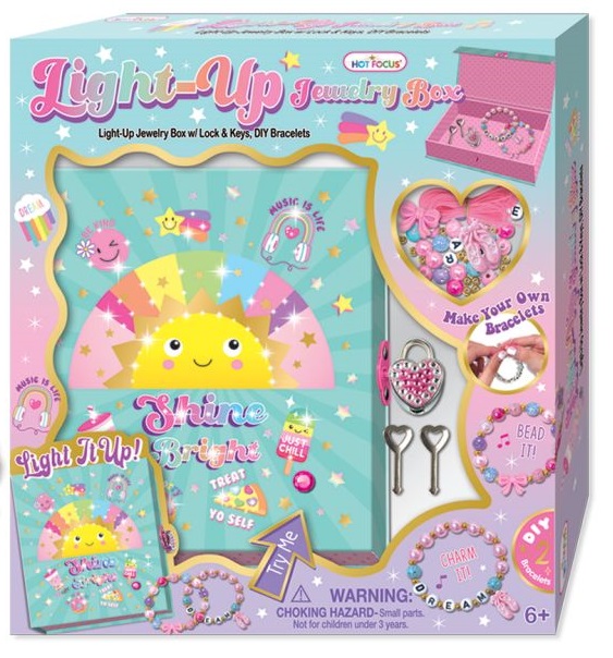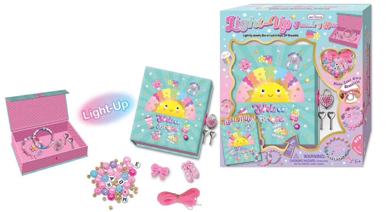 Zestaw koralików i akcesoriów do zrobienia własnych bransoletek! Po zrobieniu swojej wymarzonej biżuterii można ją schować do specjalnego pudełeczka-szkatułki, które można zamknąć kluczykiem na kłódeczkę. Dodatkowo pudełeczko ma wbudowane kolorowe mini-światełka dla większego efektu, które podświetlą się po naciśnięciu przycisku! Wiek: 6+.