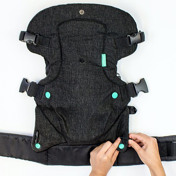 – Szeroki pas biodrowy rozłoży wagę dziecka równomiernie na noszącego