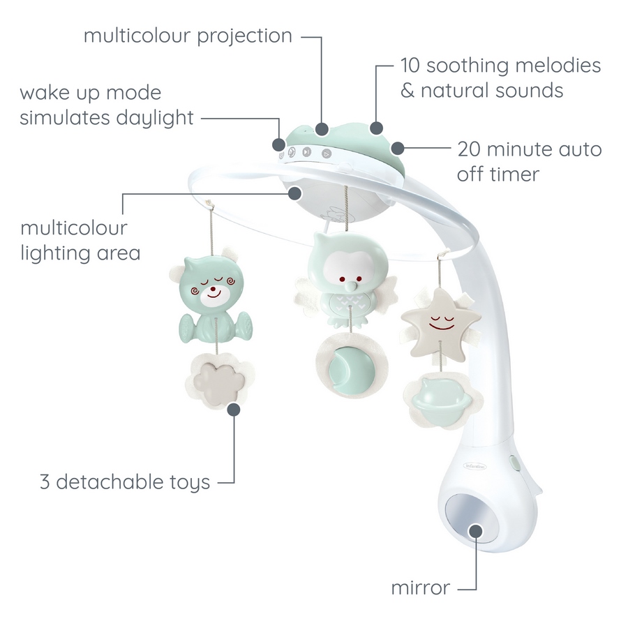 Wielofunkcyjny projektorek dostosowuje się do różnych etapów rozwojowych Twojego maleństwa: