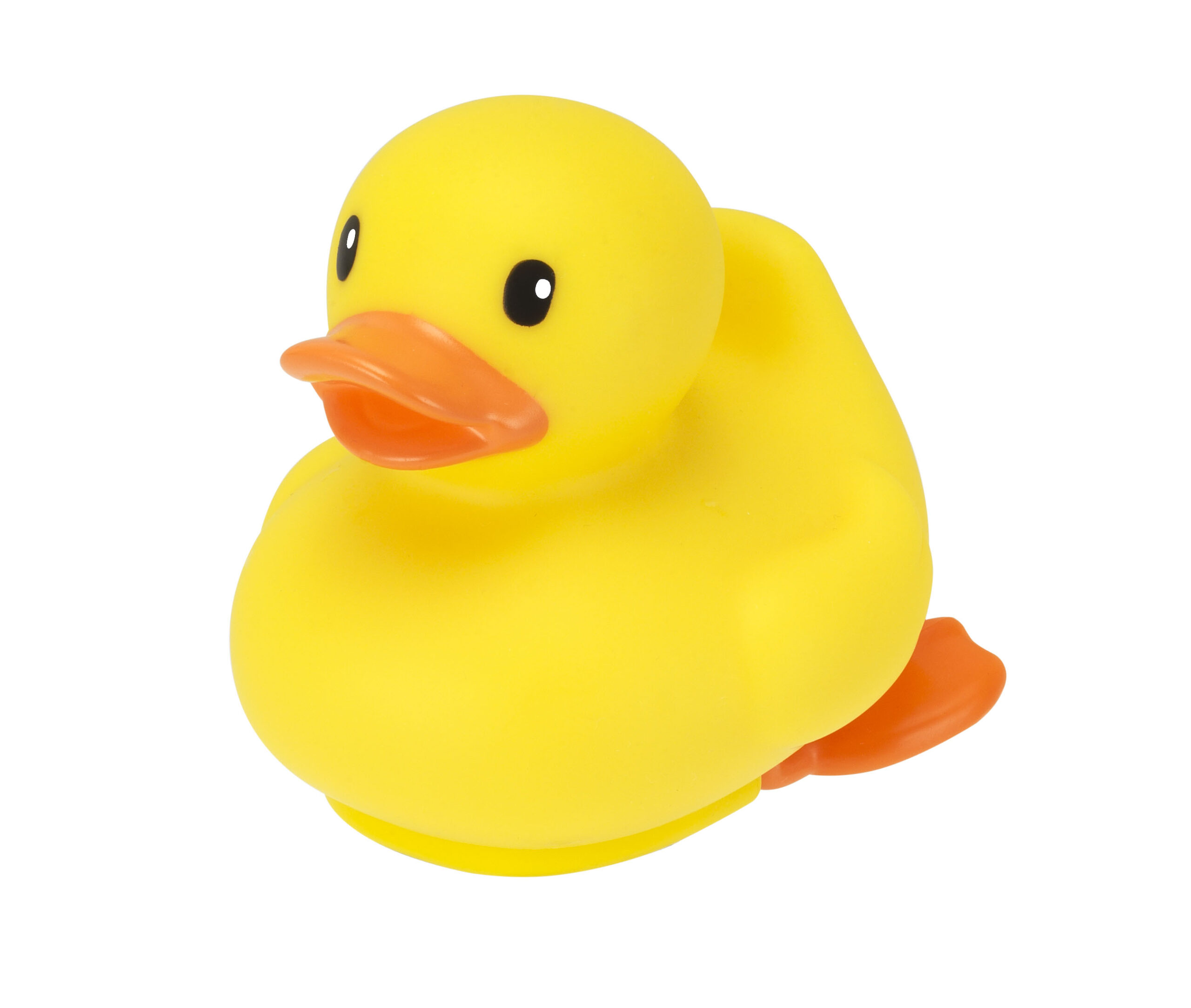 Gumowa nakręcana kąpielowa kaczuszka. Działa dzięki specjalnemu mechanizmowi. Wystarczy nakręcić kaczuszkę i położyć na wodzie. Jej nóżki będą się poruszać, a kaczuszka będzie pływać i unosić się na wodzie. Wiek: 4M+