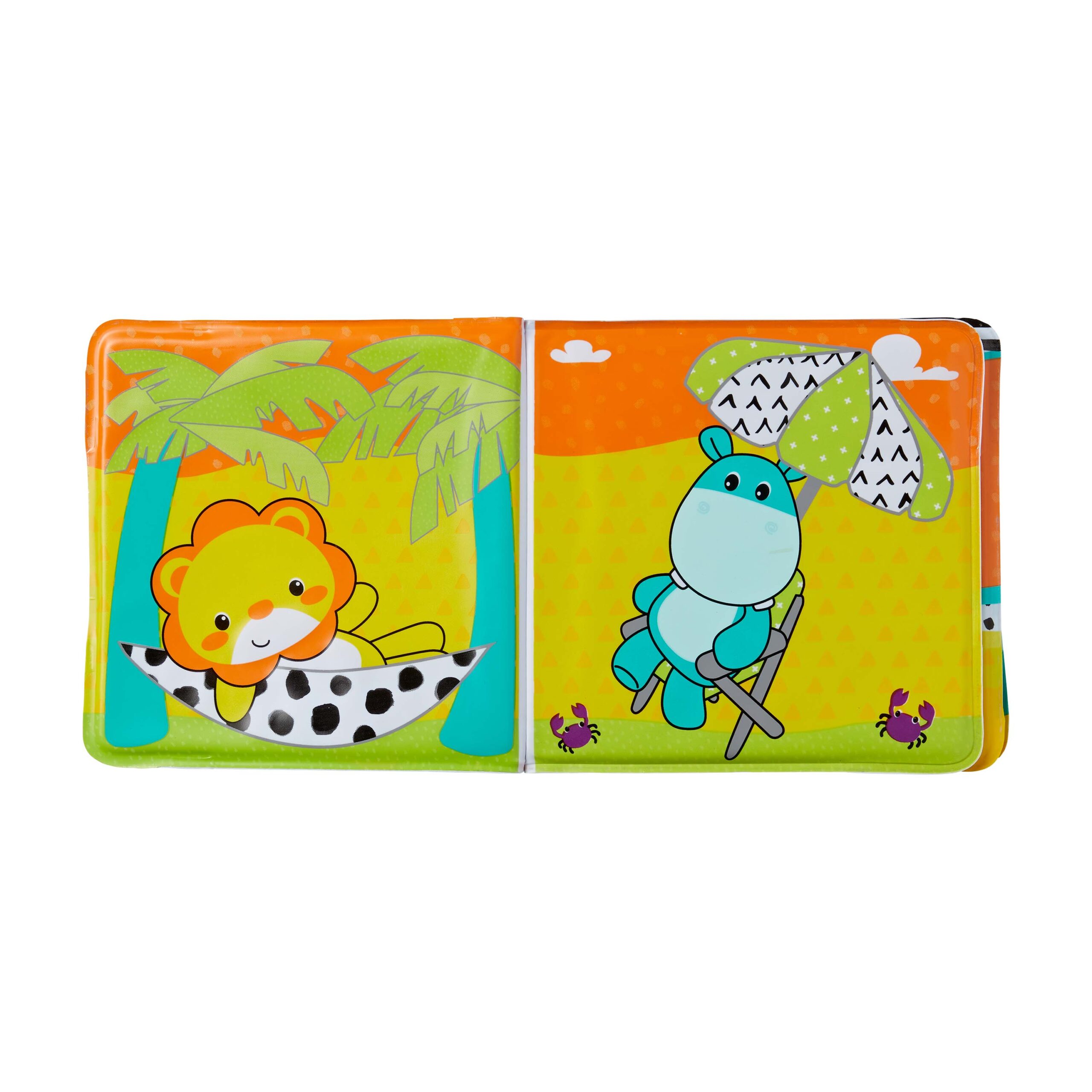 Miękka książeczka kąpielowa ze zwierzątkami. Na każdej z 6 „stron”, znajduje się inne zwierzątko co pozwoli dziecku na tworzenie dowolnych historyjek. Książeczka jest bardzo lekka i pokryta wodoodpornym materiałem dzięki czemu może też unosić się na wodzie i będzie łatwa do wyczyszczenia. Rozmiar książeczki: 14x14cm. Wiek: 0m+, szt./karton: 6