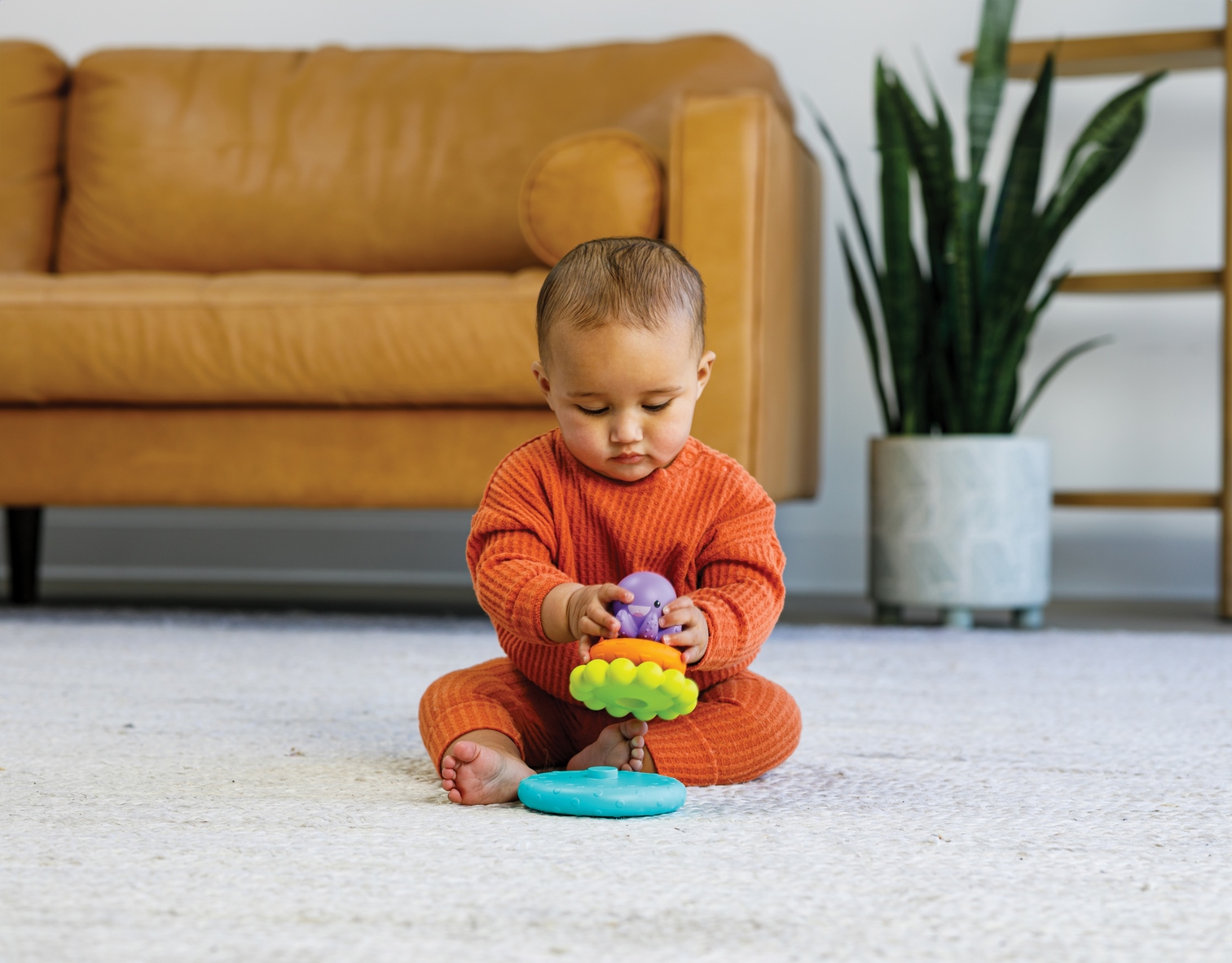 Ośmiorniczka do kąpieli do złożenia z krążków, co zachęci dziecko do logicznego myślenia i analizowania. Każdy krążek to inny kolor i wypustki do stymulowania zmysłów dziecka nawet podczas kąpieli!