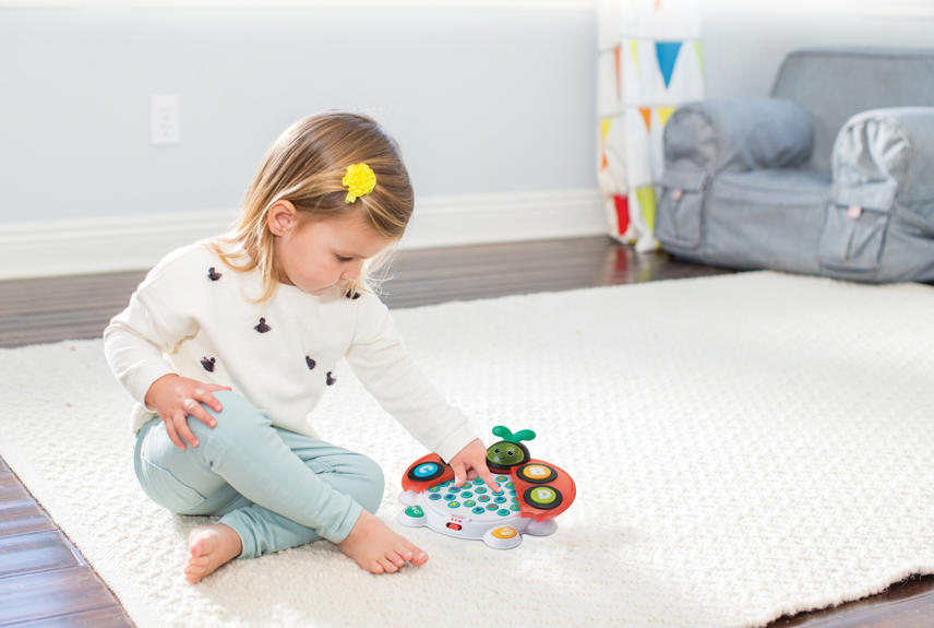 Interaktywna zabawka w kształcie biedronki. Po rozłożeniu skrzydełek pojawi się cały alfabet! Idealna do nauki pierwszych liter i kolorów. Efekty świetlne zaangażują dziecko wzrokowo. Łącznie 107 zabawnych dźwięków, 4 piosenki do nauki i 2 poziomy głośności. Wiek: 6-36m.