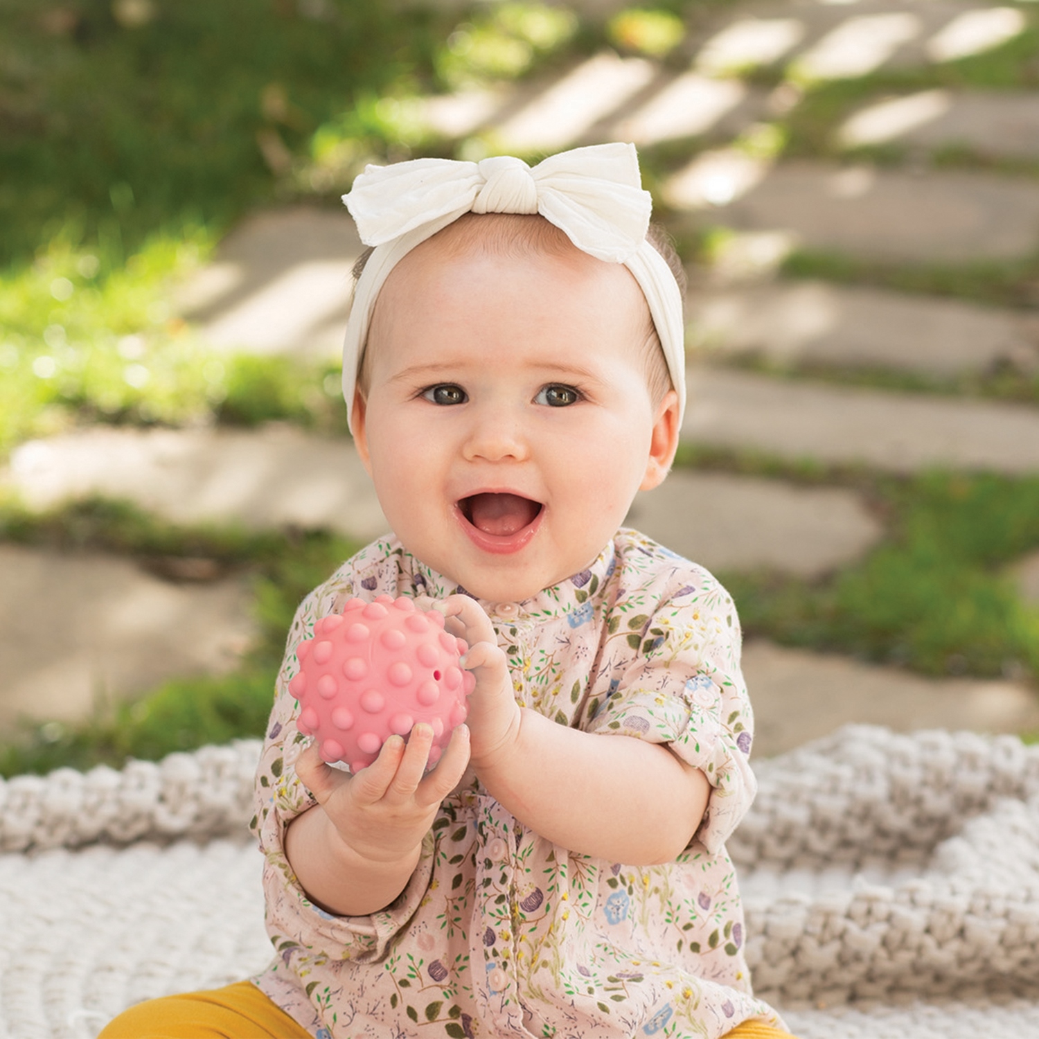 Miękkie gumowe piłki sensoryczne w różnych kolorach. Każda piłka jest w innym kształcie i rozmiarze. Idealne do sensorycznej zabawy i rozwijania zmysłu dotyku. 6 piłek łatwych do chwytania w rączki. Bez BPA. Zapakowane w przezroczystą torbę z uchwytem. Wiek: 6M+. Szt./karton: 6