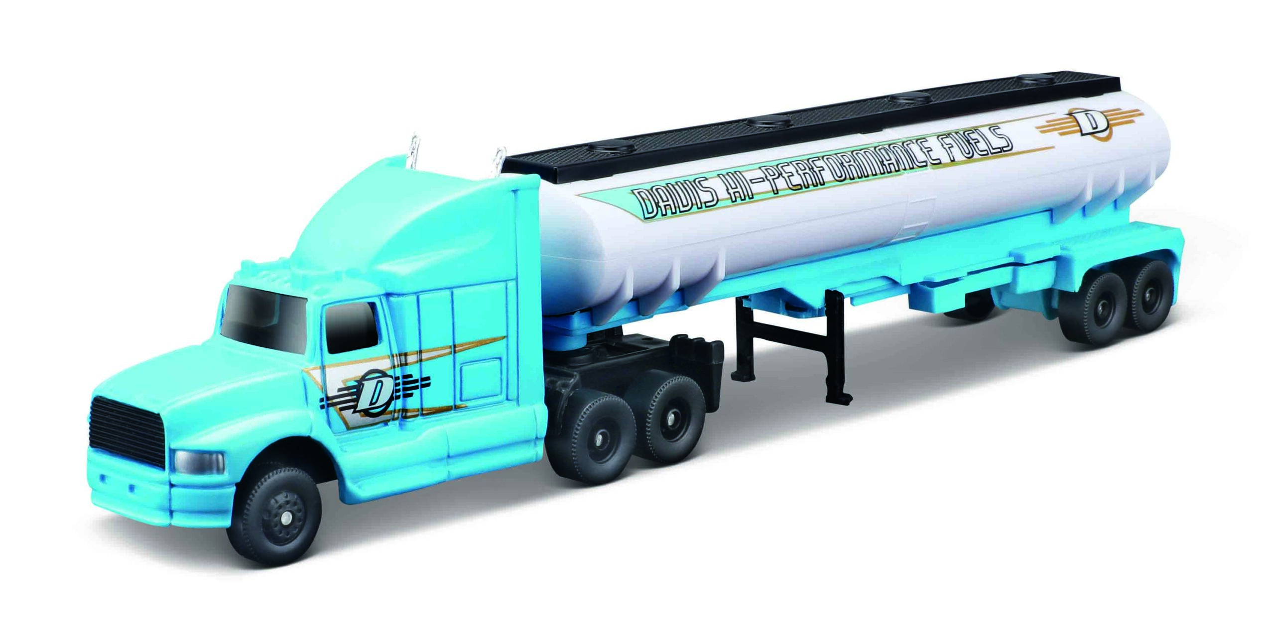 Metalowa cysterna paliwowa ze skrętną naczepą. Odłączana naczepa, wykonana z plastiku. Długość pojazdu: ok. 20 cm. Wiek: 3+. Opakowanie: pudełko z okienkiem