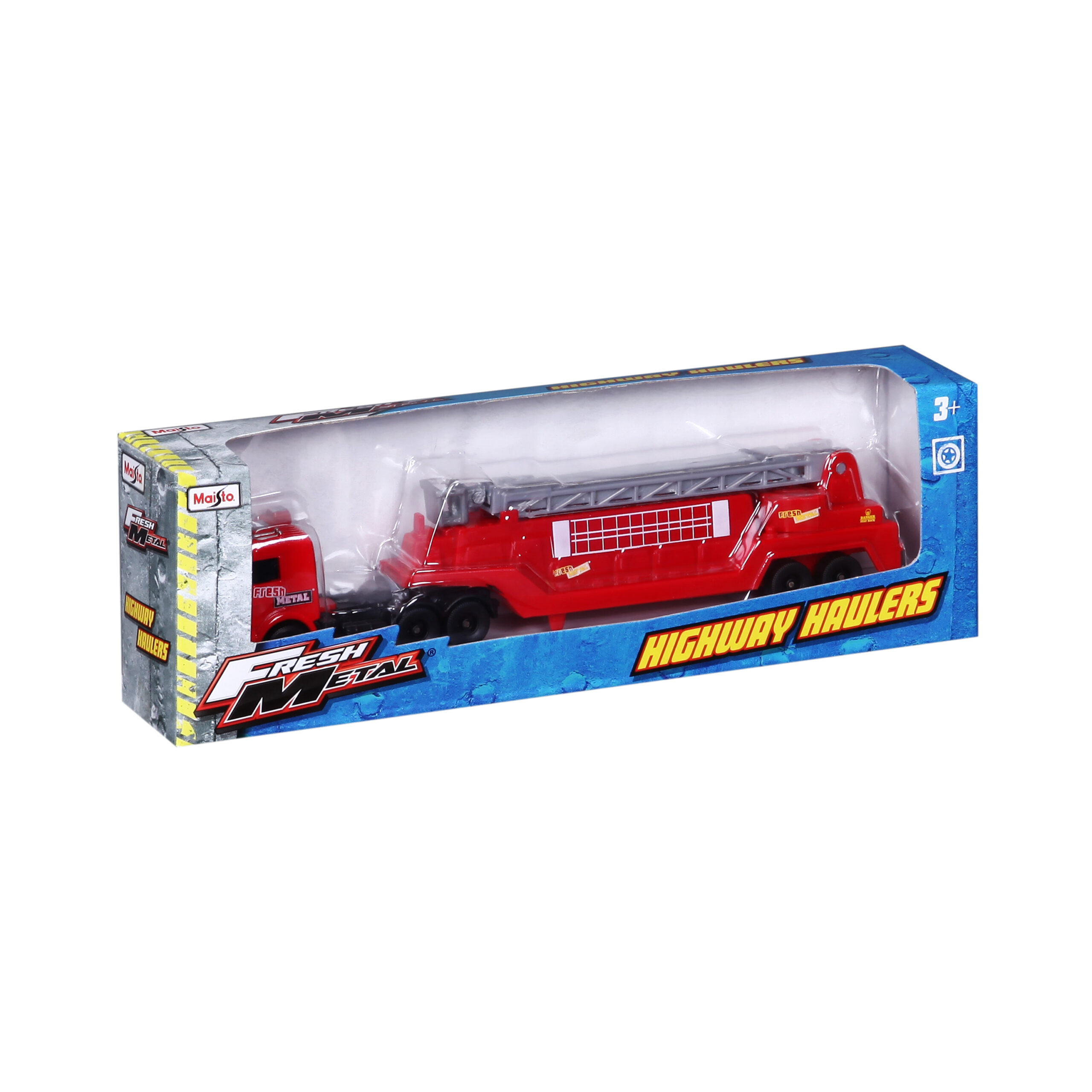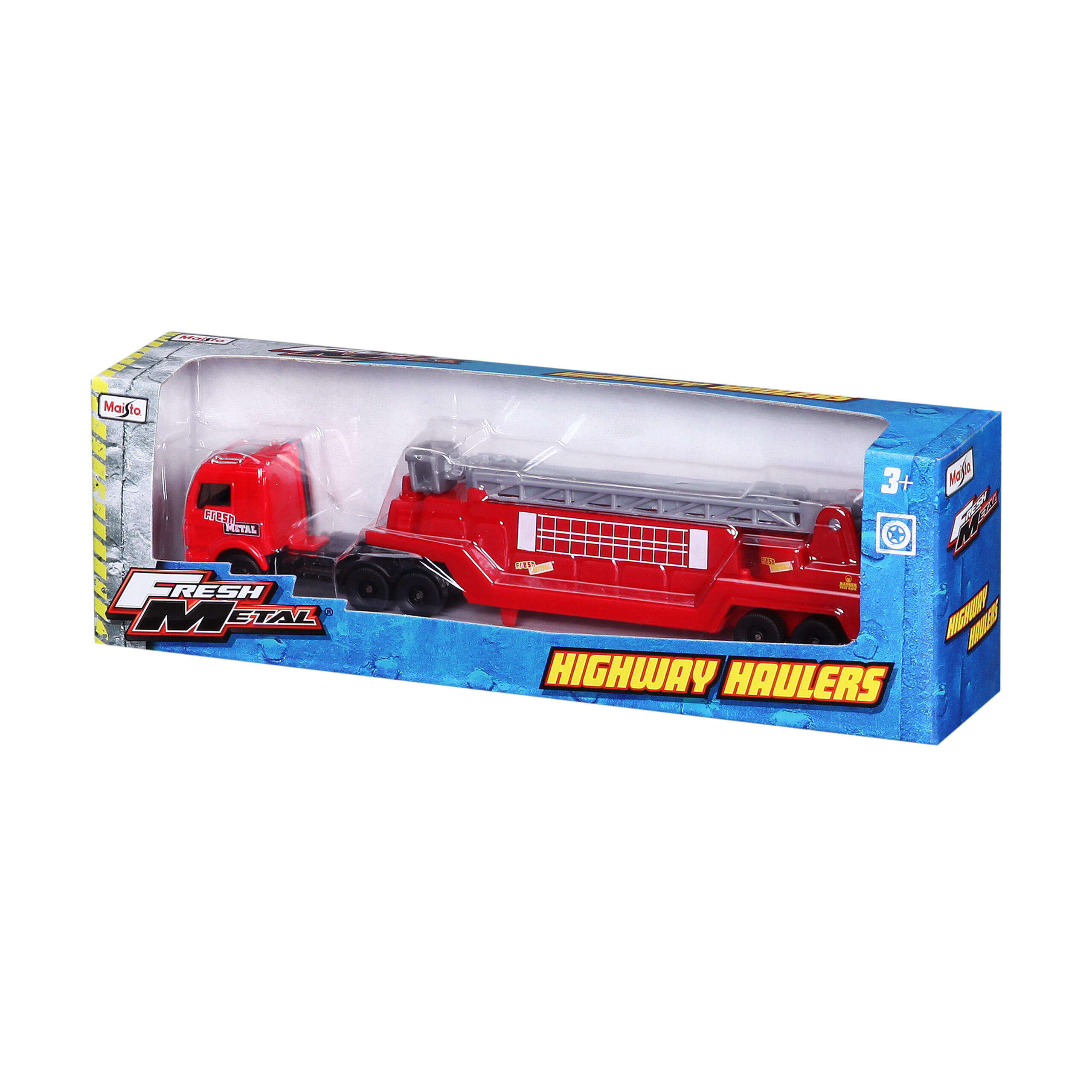 Metalowy wóz z drabiną ze skrętną naczepą. Naczepa wykonana z plastiku. Długość pojazdu: ok. 20 cm. Wiek: 3+. Opakowanie: pudełko z okienkiem