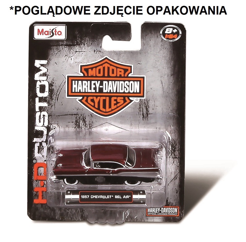 Model autka na oficjalnej licencji Harley-Davidson w skali 1:64. Wykonany z metalu z plastikowymi elementami. Charakteryzuje się dbałością o szczegóły oraz ciekawą grafiką. Wiek: 8+. Opakowanie: blister z podstawką.