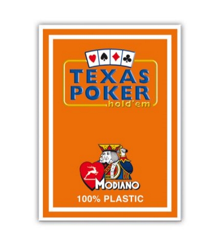 MODIANO Karty do pokera Texas Hold’em Jumbo Index 100% plastic, kolor pomarańczowy.