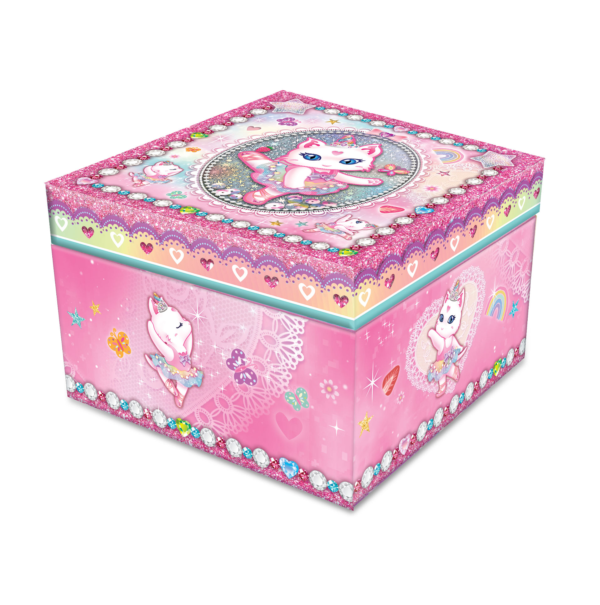 Pozytywka gra klasyczną melodię. Po otwarciu figurka będzie się kręcić. Gdy melodia przestanie grać pozytywkę wystarczy nakręcić. Działa dzięki specjalnemu mechanizmowi, nie wymaga baterii. Zawiera lusterko oraz miejsce na schowanie drobiazgów. Wiek: 6+