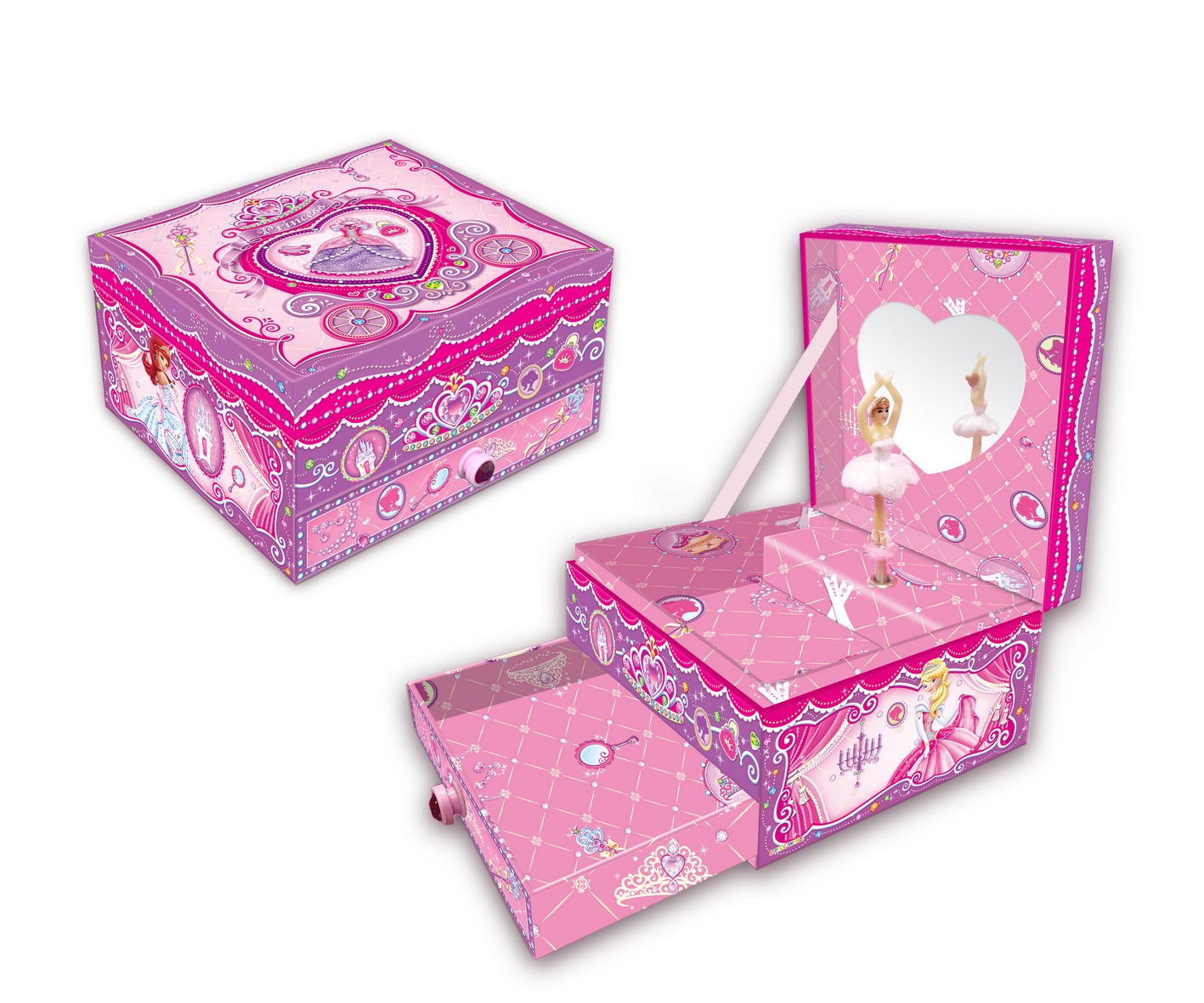 Pozytywka gra klasyczną melodię. Po otwarciu figurka będzie się kręcić. Gdy melodia przestanie grać pozytywkę wystarczy nakręcić. Działa dzięki specjalnemu mechanizmowi, nie wymaga baterii. Zawiera lusterko, miejsce na schowanie drobiazgów oraz wysuwaną szufladkę. Wiek: 6+