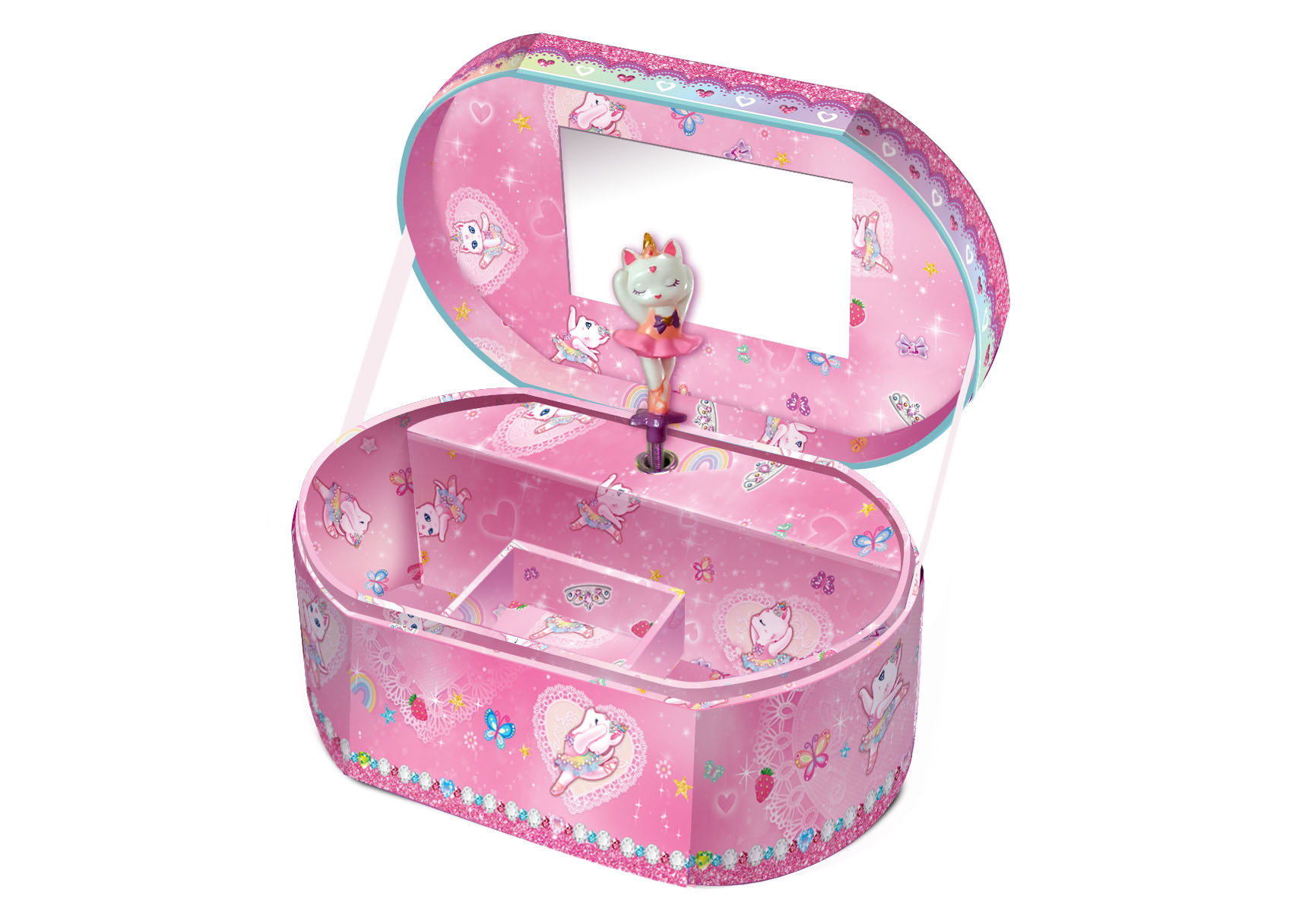 Pozytywka gra klasyczną melodię. Po otwarciu figurka będzie się kręcić. Gdy melodia przestanie grać pozytywkę wystarczy nakręcić. Działa dzięki specjalnemu mechanizmowi, nie wymaga baterii. Zawiera lusterko oraz miejsce na schowanie drobiazgów. Wiek: 6+