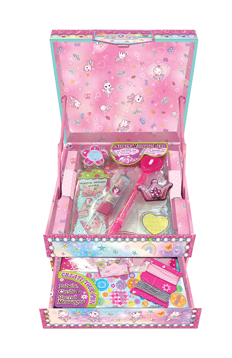 Zestaw zapakowany w kartonowe pudełko ze zdobieniami zamykane na magnes. Po otwarciu wysuwają się 2 szufladki, w których można umieścić akcesoria i dodatkowe drobiazgi.