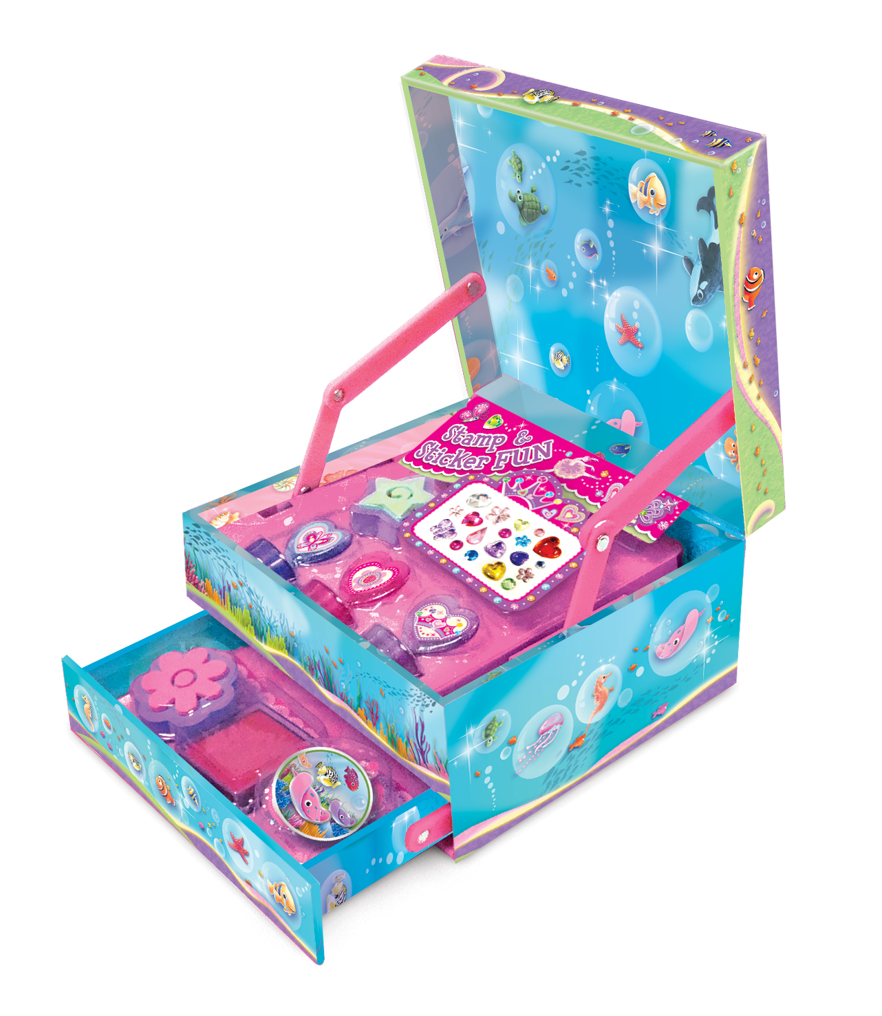 Zapakowany w ozdobne pudełeczko-szkatułkę z samootwierającą się szufladką. Wystarczy podnieść wieczko, a szufladka sama się wysunie.