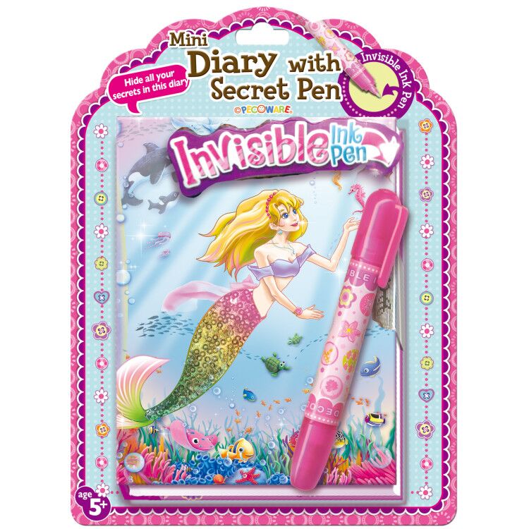 Dzięki małemu rozmiarowi będzie idealny jako pierwszy pamiętnik. Zawiera kartki z liniami na drobne zapiski, a bogate zdobienia i dekoracje przyciągną wzrok. Jedna końcówka długopisu pisze „niewidzialnym” tuszem, który będzie widoczny dopiero po zamalowaniu go drugą końcówką. W zestawie 2 kluczyki do otwierania zamka. Wiek: 5+