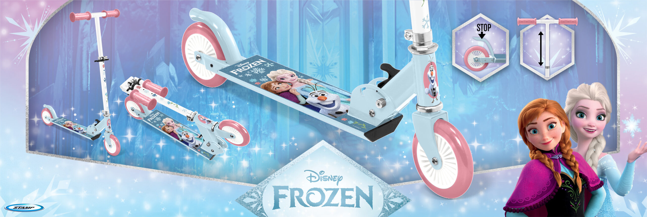 Hulajnoga 2-kołowa licencyjna. Posiada lekką, aluminiową konstrukcję, antypoślizgowy podest, hamulec tylnego koła oraz wytrzymałe kółka z PVC. Można ją w łatwy i szybki sposób złożyć, co ułatwia transport i przechowywanie. Rozmiar kół: 120 mm. Regulowana wysokość kierownicy: 74–83 cm. Wymiary podestu: dł. 35 cm, szer. 10 cm. Waga hulajnogi: 2,4 kg. Maksymalne obciążenie: 50 kg. Wiek: 4+. Szt./karton: 6