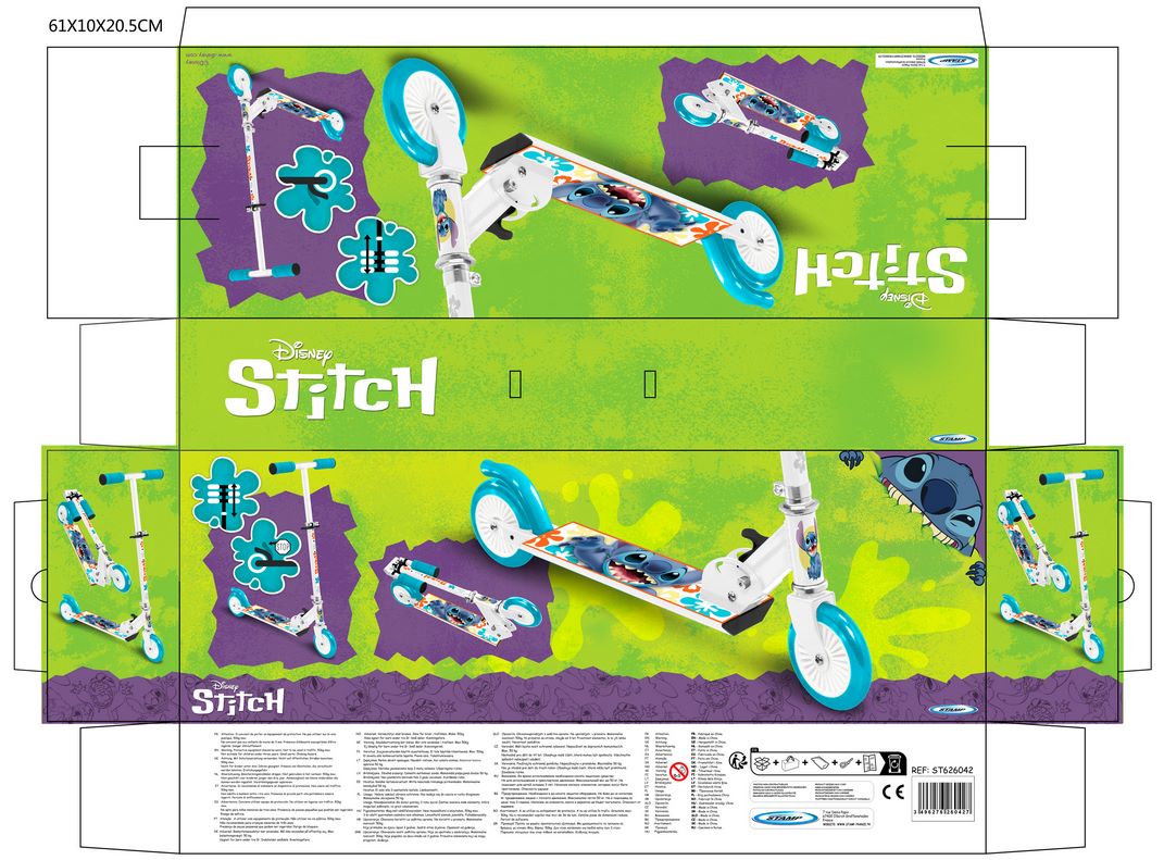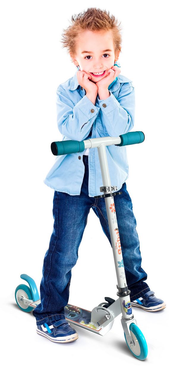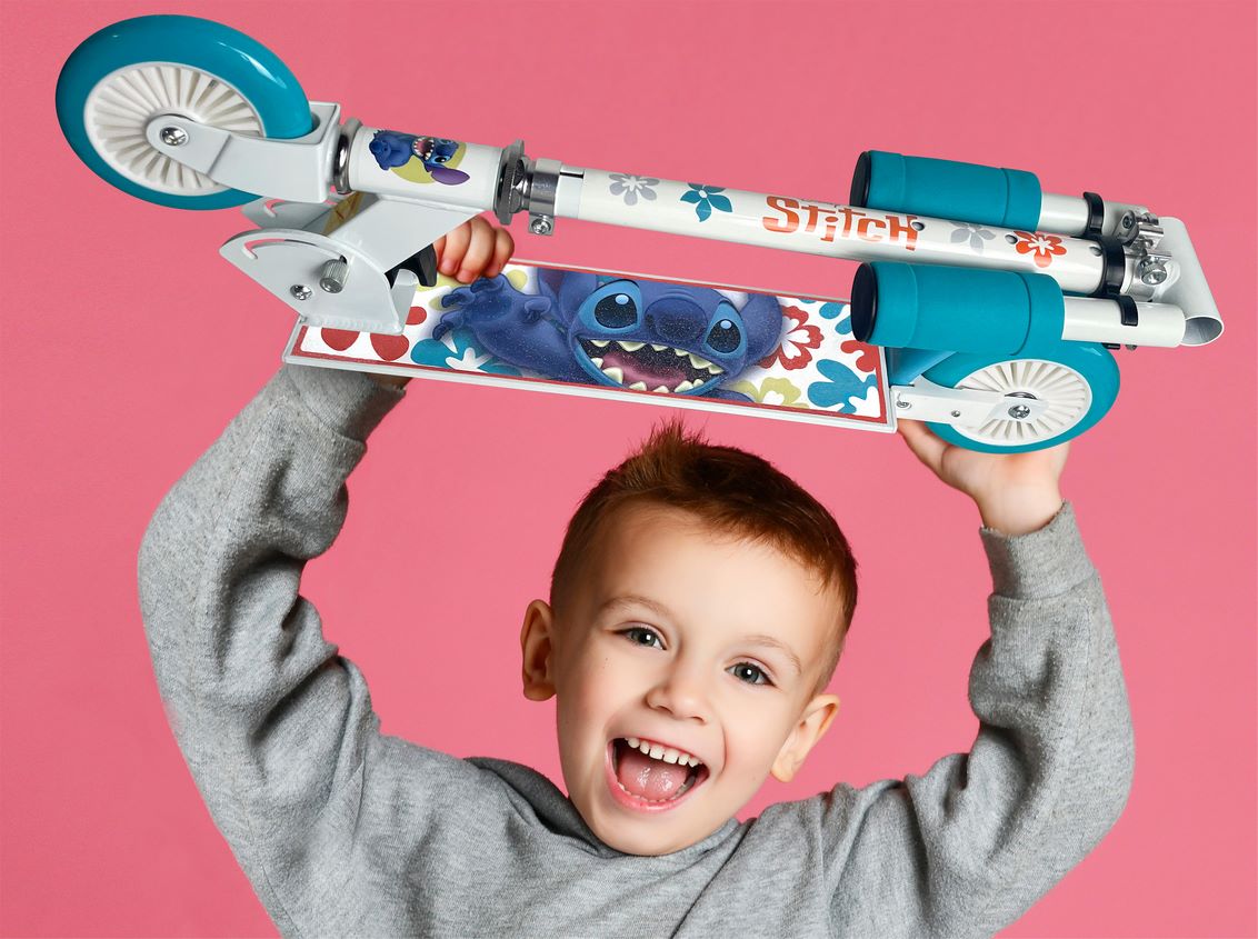 Hulajnoga 2-kołowa licencyjna. Posiada lekką, aluminiową konstrukcję, antypoślizgowy podest, hamulec tylnego koła oraz wytrzymałe kółka z PVC. Można ją w łatwy i szybki sposób złożyć, co ułatwia transport i przechowywanie. Rozmiar kół: 120 mm. Regulowana wysokość kierownicy: 74–83 cm. Wymiary podestu: dł. 35 cm, szer. 10 cm. Waga hulajnogi: 2,4 kg. Maksymalne obciążenie: 50 kg. Wiek: 4+. Szt./karton: 6